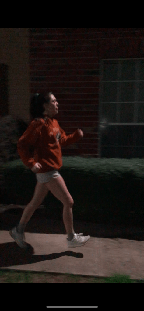 {TIP: the most common running error is leading with your chest instead of your feet. Really try to think about keeping your pelvis forward.}